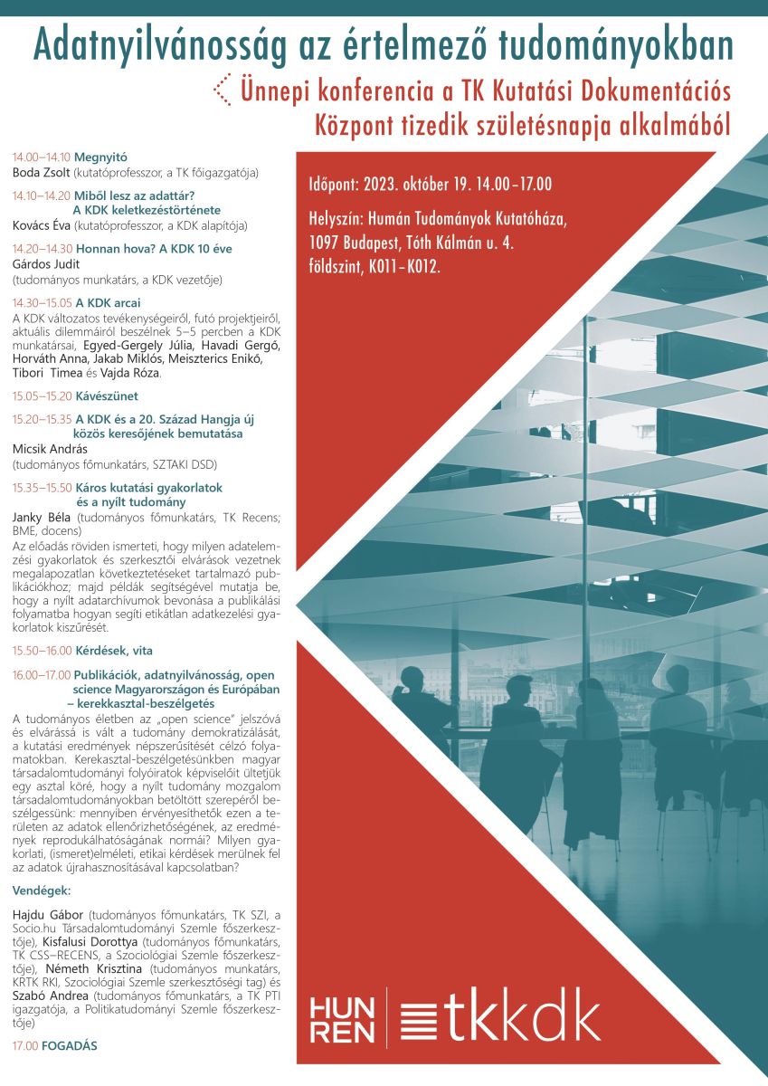 Adatnyilvánosság az értelmező tudományokban. Ünnepi konferencia a TK Kutatási Dokumentációs Központ tizedik születésnapja alkalmából